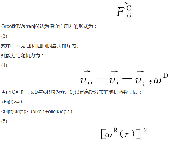 耗散力与随机力为:当r≥rC=1时,ωD与ωR均为零。θij(t)是高斯分布的随机函数,即:
